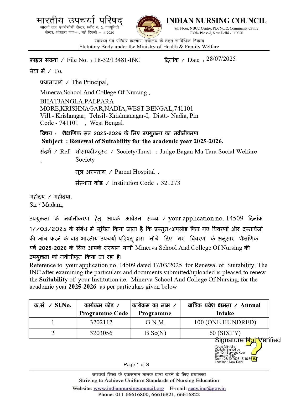 Indian Nursing Council and West Bengal Nursing Council